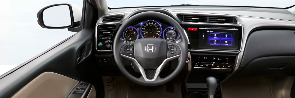 The technology fitted within the City keeps drivers connected wherever they travel and makes motoring much easier. All model versions include a seven-inch display as part of an audio system which features USB/AUX input and a CD player.The Bluetooth® interface enables users to take calls without lifting a finger from the wheel, while the PUSH & Drive button reinforces the car’s sophistication. For effortless driving, Honda fits cruise control and power steering as standard.