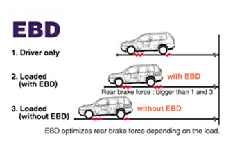 Electronic Brake Force Distribution (EBD) provides advanced braking control in every load situation for safe and stress free driving.